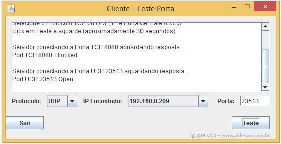Programa desenvolvido em Java para poder usado tanto em sistema operacional Windows como em Linux, para teste de porta do computador, o programa testa a porta especifica tanto em TCP como UDP individualmente, usada para saber se a porta está aberta ou fechada. ...