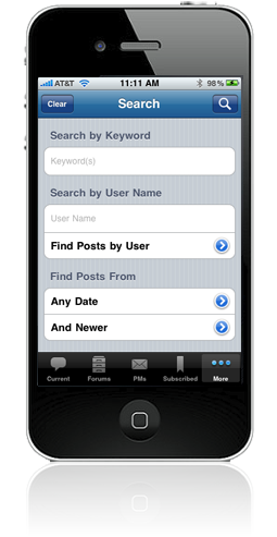 Buscas Completas: Com o Forum Runner você terá recursos de busca completos a sua disposição. Está em busca de um tema em nossos Fóruns mas não sabe por onde começar a procurar? Use o sistema de busca.