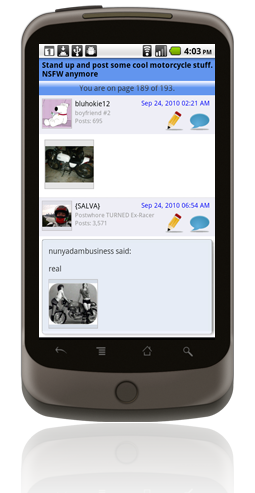 Salvando Imagens das Threads: Se você possui um iPhone ou iPod Touch com o Forum Runner instalado, poderá salvar todas as imagens presentes em nossos Fóruns que forem de seu interesse. Baixe todas a s imagens que lhe interessarem, e acesse-as offline sempre que desejar.