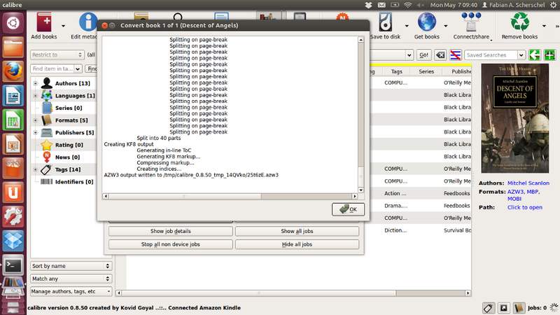 O software de gerenciamento de ebook Calibre, foi atualizado para permitir a conversão de livros para o Kindle Format 8 (KF8) da Amazon. O suporte oficial para o plugin AZW3 que lida com essas conversões, foi introduzido na versão 0.8.50 do calibre, e funciona com as versões mais recentes do leitor de livros electrônicos Kindle, como o Kindle em sua quarta geração, Kindle Fire e Kindle Touch.