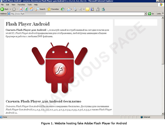 Usuários russos que são adeptos do sistema operacional móvel Android, tem sido constantemente alvo de Trojans que se apresentam como aplicativos legítimos. No mês passado, a falsificação teve como alvo os aplicativos Instagram e o Angry Birds Space. Desta vez, a engenharia social envolve um falso Flash Player para o popular sistema móvel do Google.