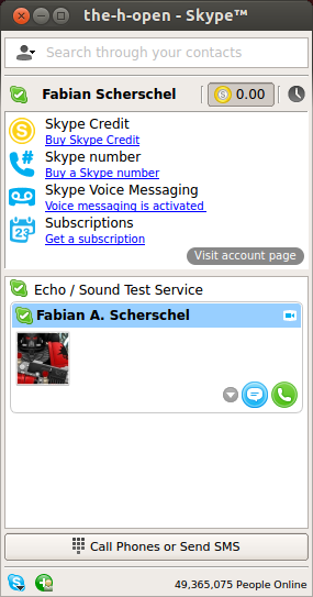 Os usuários já podem verificar o status de suas subscrições através da janela principal do Skype 4.2 para Linux.Fonte: Heise Online