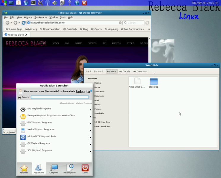 Essa distribuição é chamada de RebeccaBlackOS - aparentemente o desenvolvedor é um fã de Rebecca Black e teve inspiração no Hannah Montana Linux e Justin Bieber Linux quando escolheu esse nome. Em seu anúncio de lançamento, o desenvolvedor aponta que a distribuição possui vários problemas básicos de segurança: por exemplo, uma senha é armazenada em uma variável de ambiente, o que permite sua leitura por outras aplicações.