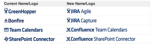 A Atlassian anunciou recentemente que a companhia irá renomear um número de suas aplicações do tipo add-on para "tornar mais fácil para seus clientes identificar os produtos standalone dos add-ons da Atlassian", além de simplificar sua lista de produtos. Os produtos de software, por si próprios, não serão alterados; a Atlassian está apenas mudando seus nomes e logotipos para tornar mais clara sua identificação e como eles funcionam com as aplicações de gerenciamento de ciclo-de-vida principal, o JIRA e o Confluence.