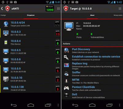 A ferramenta para Android zAnti consiste em suas partes: a própria versão anti e seus plugins extensíveis. Dessa forma, as próximas atualizações irão adicionar novas funcionalidades, plugins ou vulnerabilidades/exploits para o utilitário. A utilização de Anti é muito intuitiva - em cada execução, ele irá mapear sua rede, scanear dispositivos ativos e vulnerabilidades, e irá exibir as informações em conformidade: a cor verde mostrará sinais de um "dispositivo Ativo", a cor amarelo mostrará sinais de "portas disponíveis", e o led vermelho mostrará sinais de "vulnerabilidade encontrada".