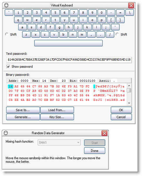O software de criptografia de arquivos AEP pode, perfeitamente, gerar uma chave de criptografia muito forte, e um exemplo real disso é "(+3!';0.;4{M>tMpRnK7&*u'F7)SYu2Q"). A capacidade de lembrar-se de tais senhas fortes (com a ajuda de um cartão de memória USB , é claro) é a chave para usar os mais modernos algoritmos de criptografia, que são 99,9% eficazes. Dessa forma, a pessoa poderá apagar "source files" após o processo de criptografia, e lembrar que nunca deverá apagar arquivos confidenciais usando o Windows Explorer.