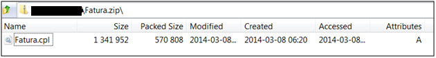Depois de mais redirecionamentos, o usuário é enviado para a URL de um arquivo malicioso. Dentro deste arquivo baixado chamado Fature.zip, se encontra o malware Control Panel.