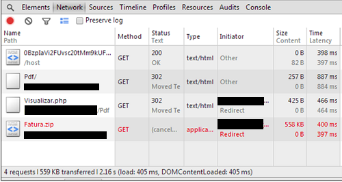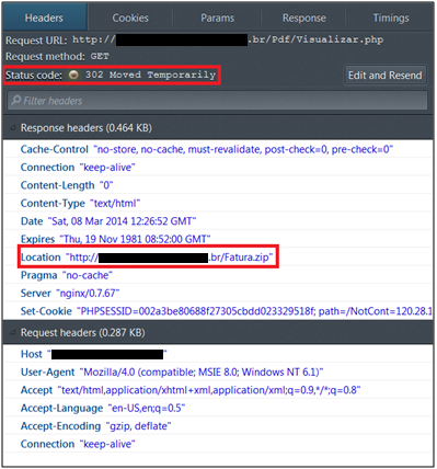 A partir daqui, como foi possível realizar o download da carga maliciosa Fatura.zip? Nesse processo, foi usado código de status HTTP de redirecionamento, como foi usado por domínio malicioso #1: