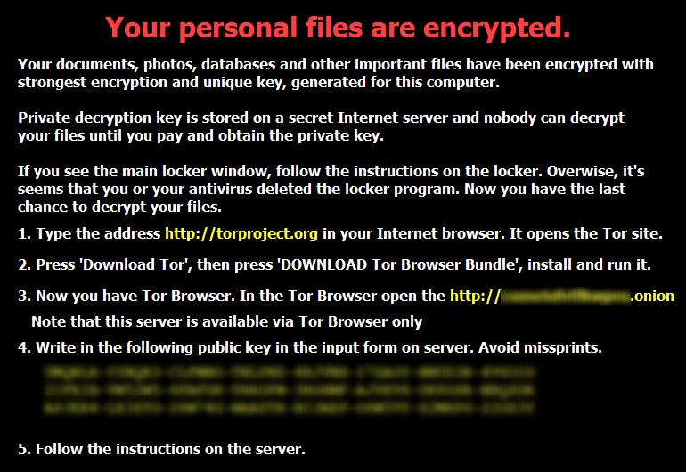 No final de junho deste ano de 2014, a Kaspersky Lab detectou um novo "encryptor". A análise realizada pela equipe de profissionais, mostrou que o cavalo de Tróia não tinha nada em comum com outras famílias conhecidas e uma série de características que sugeriam que era uma criação completamente nova. O nome da praga? CTB-Locker. Esta nova família foi detectada pela Kaspersky Lab como Trojan-Ransom.Win32.Onion.