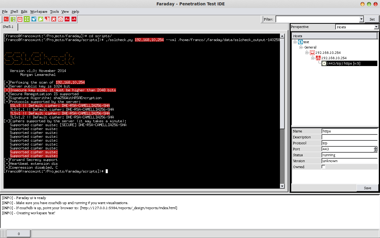 Além do mais, a ferramenta foi desenvolvida com um conjunto especializado de funcionalidades que ajudam muito os usuários a melhorar o seu próprio trabalho. Importante ressaltar que Faraday desempenha o mesmo papel que um IDE durante a programação, mas a partir da perspectiva de um teste de penetração.