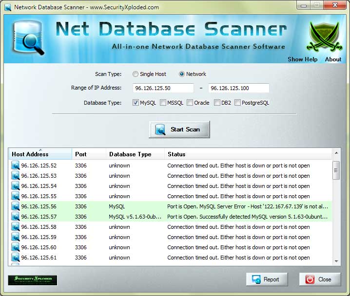 Network Database Scanner, o software gratuito desenvolvido para detectar remotamente o tipo de serviços de banco de dados em execução no sistema de rede, disponibilizou sua versão 2.5. Ele pode ajudá-lo a fazer a varredura de sistemas de forma simples ou em múltiplos sistemas em sua rede interna ou na Internet. Além disso, o utilitário faz uso de um smart timer baseado no método Connect, que faz a varredura de maneira mais rápida do que o método tradicional. A versão atual suporta os seguintes serviços de banco de dados populares: MySQL, MSSQL, Oracle, DB2 e PostgreSQL. Após a verificação bem sucedida, ele realiza uma verificação de impressões digitais para alguns bancos de dados. Em caso do MySQL, ele também detecta a versão do banco de dados atual.