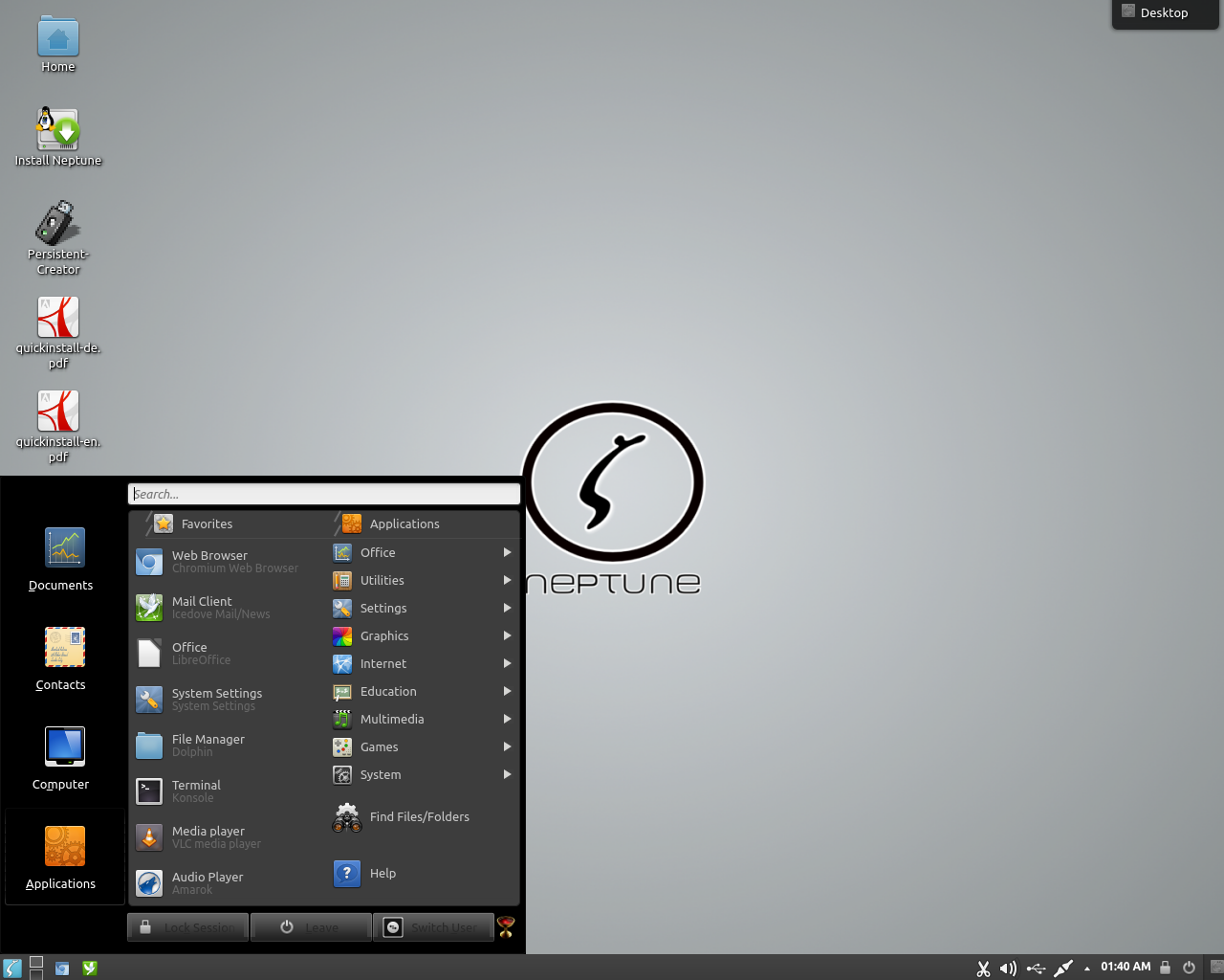 Neptune é uma distribuição GNU/Linux voltada para desktops. Baseia-se no ramo estável do Debian, exceto o kernel mais recente, trazendo alguns drivers e versões mais recentes dos aplicativos populares, como o LibreOffice. Ele também vem com a última versão do desktop KDE. Os principais objetivos da distribuição são proporcionar uma boa aparência ao ambiente desktop (de uso geral), com a reprodução multimídia pré-configurada e para oferecer um instalador USB easy-to-use com uma opção de persistência.