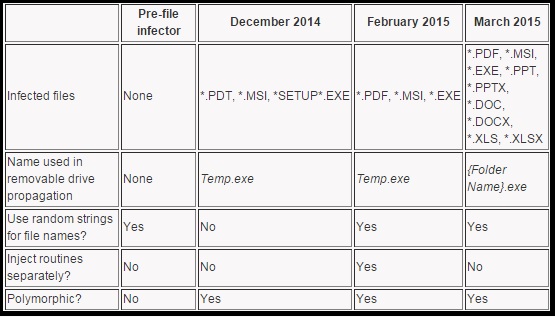 O surto ocorrido em fevereiro mostrou que o malware aumentou o seu âmbito e melhorou o seu mecanismo furtivo. As variantes "URSNIF" são detectadas como PE_URSNIF.BO e PE_URSNIF.B. Ele utiliza strings já encontrados em arquivos de sistema legítimos para suas propriedades, tais como seu nome de arquivo, nome da pasta, e entradas de registro. Isto é feito para esconder-se próximo a outros arquivos de sistema legítimos. Além do mais, os nomes de arquivos que ele utiliza são uma combinação de nomes de arquivos de sistema legítimos; por exemplo, o malware irá nomear cmdlnsta.exe, que resulta de uma combinação de nomes de arquivos legítimos cmdl32.exe e Rwinsta.exe. Além disso, "URSNIF" era conhecido por apresentar esse comportamento antes de se tornar um "file infector".