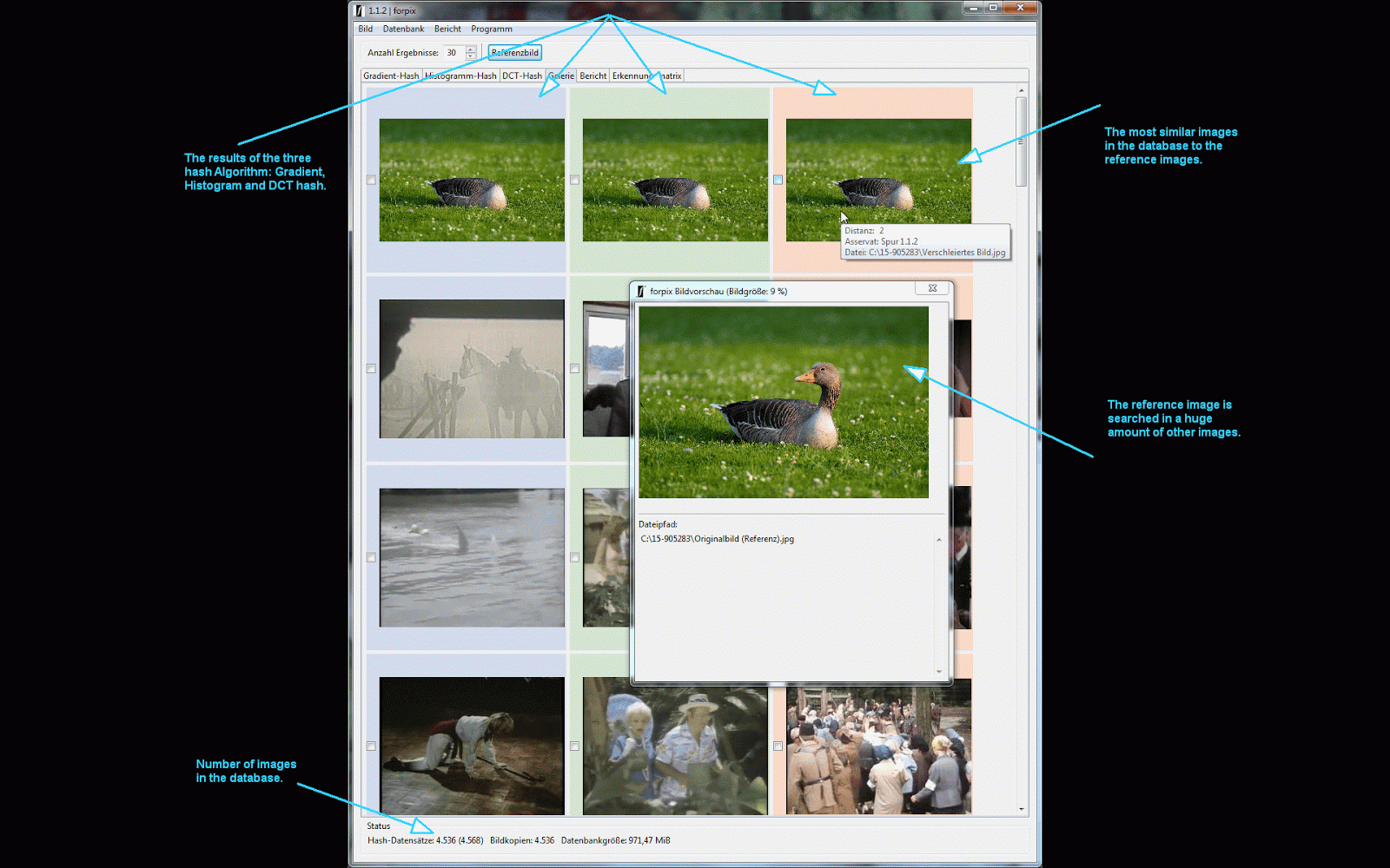 Forpix, para quem não conhece, é um programa forense voltado para a identificação de imagens que possuem alguma similaridade, e que já não são idênticas, devido à manipulação de imagens. Daqui em diante será possível descrever a formação técnica para o entendimento básico da necessidade de um tal programa e como ele funciona. A partir de arquivos de imagem ou, em geral, você pode criar os chamados valores de hash criptológicos, que representam uma espécie de impressão digital do arquivo. Na prática, estes valores têm a característica de serem únicos. Portanto, se um valor de hash para um dado de imagem é conhecido, a imagem pode ser identificada exclusivamente em uma grande quantidade de outras imagens, pelo valor do hash.