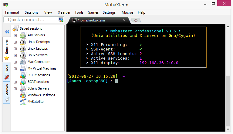 MobaXterm é a sua caixa de ferramentas que foi desenvolvida para trabalhos de computação remota. Em um único aplicativo do Windows, ele oferece grande quantidade de funções que são adaptadas para programadores, webmasters, administradores de TI e praticamente todos os usuários que precisam lidar com seus trabalhos de forma remota, usando acima de tudo, a simplicidade. MobaXterm disponibiliza todas as importantes ferramentas de rede remota (SSH, X11, RDP, VNC, FTP, MOSH) e os comandos Unix (bash, ls, cat, sed, grep, awk, rsync, ...) a área de trabalho do Windows, tudo em um único arquivo .exe portátil que funciona em modo "out-of-the-box".