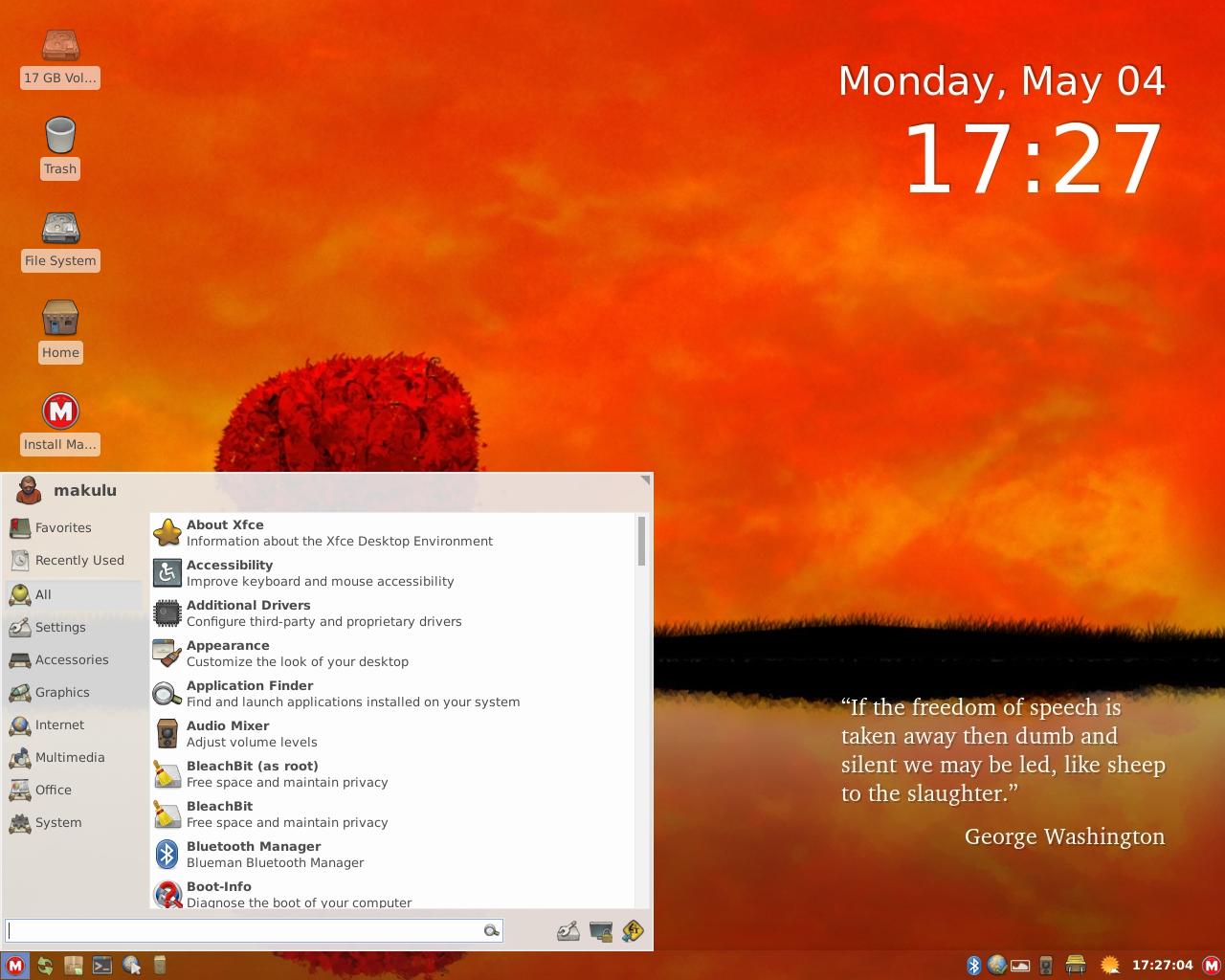 Na semana que passou, foi lançada uma nova versão do MakuluLinux. A nova versão, MakuluLinux 9 "Xfce", está disponível em duas edições, Normal e Lite. "MakuluLinux libera a série 9 com o ambiente Xfce. Os recursos da edição Normal trazem toda a magia do Makulu e os usuários adoraram as novidades implementadas. O ambiente desktop é muito bonito e apresenta facilidade de usar e de navegar; ele vem embalado com a coleção de software pronta para usar "fora da caixa", caracterizado pela rapidez e estabilidade. A edição Lite ostenta o mesmo estilo que a edição Normal traz, mas vem com quase nenhum software instalado, apenas com todos os elementos básicos de back-end já configurados.