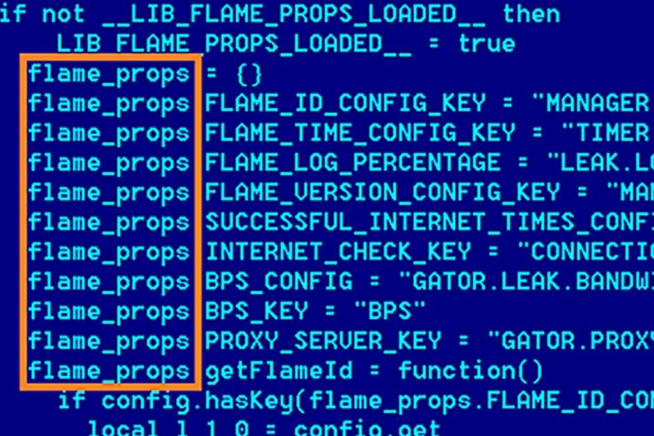 Muito semelhante ao Stuxnet, um malware chamado Flame começou a se espalhar por milhares de computadores, principalmente no Oriente Médio. O seu objetivo de infiltração visa organizações iranianas e outras similares localizadas na mesma região. Na sequência do seu surgimento, Flame confirmou que a ousadia e a sofisticação faziam parte de suas principais características, quando mostrou se passar por uma atualização oficial do Windows. A grande cartada desta praga, foi uma medida para a própria segurança dos seus criadores: a autodestruição do malware. Apesar do Flame ter um propósito e uma composição diferente do Stuxnet, além de parecer ter sido escrito por um programador diferente, sua complexidade, o alcance geográfico de suas infecções e seu comportamento são fortes indícios de que um Estado-nação esteja por trás dele, ao invés de cybercriminosos comuns. Isso vem assinalar a praga como outra ferramenta no crescente arsenal de cyber-armamentista. Vale ressaltar que os pesquisadores da Kaspersky Lab fizeram uma análise através do seu arquivo de relatos, que contém nomes de arquivos suspeitos enviados automaticamente de computadores de consumidores para que os nomes pudessem ser comparados com listas de malwares conhecidos. A partir dai, eles encontraram um algoritmo hash MD5 e um nome de arquivo, que pareciam ter sido implementados apenas em computadores do Irã e outros países do Oriente Médio.