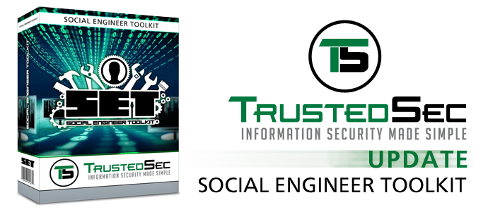 O Toolkit Social-Engineer (SET) foi criado e escrito pelo fundador da TrustedSec, com o intuito de torná-lo uma ferramenta open source orientada a Python que visa realizar testes de penetração em torno de técnicas de engenharia social. Recentemente, ele recebeu a sua versão 6.5, que traz melhorias e ajustes necessários. SET tem sido apresentado em conferências bastante renomadas, incluindo Blackhat, DerbyCon, Defcon e ShmooCon. Com mais de dois milhões de downloads registrados, SET é o padrão para testes de penetração de engenharia social e foi ampla e fortemente suportado dentro da comunidade de segurança. Além dos tantos milhões de downloads, tem como objetivo alavancar ataques tecnológicos avançados em um ambiente que envolva engenharia social. Nesse contexto, a TrustedSec acredita que a engenharia social é um dos ataques mais difíceis de se proteger e agora, passou a ser um dos mais prevalentes.