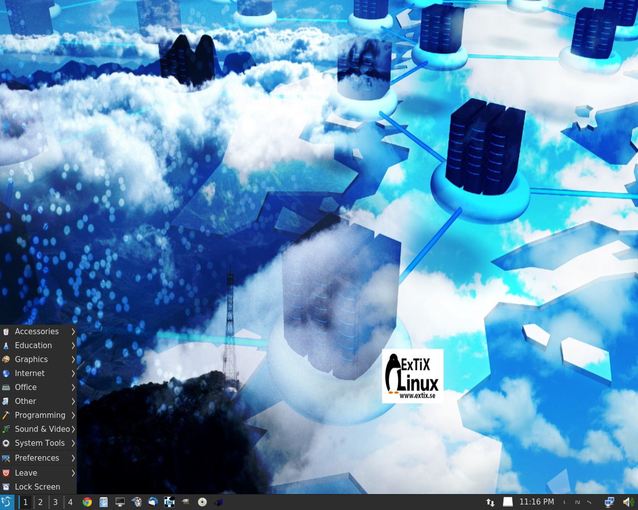 Esse é o produto da fusão entre o LXDE-Qt e os projetos Razor-qt: Assim, os uusários contam com um leve, modular, super rápido ambiente de desktop e com uma interface bastante amigável. O idioma do sistema é o Inglês. ExTiX é uma distribuição Linux voltada para ambientes desktop e Live DVD com base no popular Ubuntu, que apresenta uma área de trabalho LXQt personalizada.