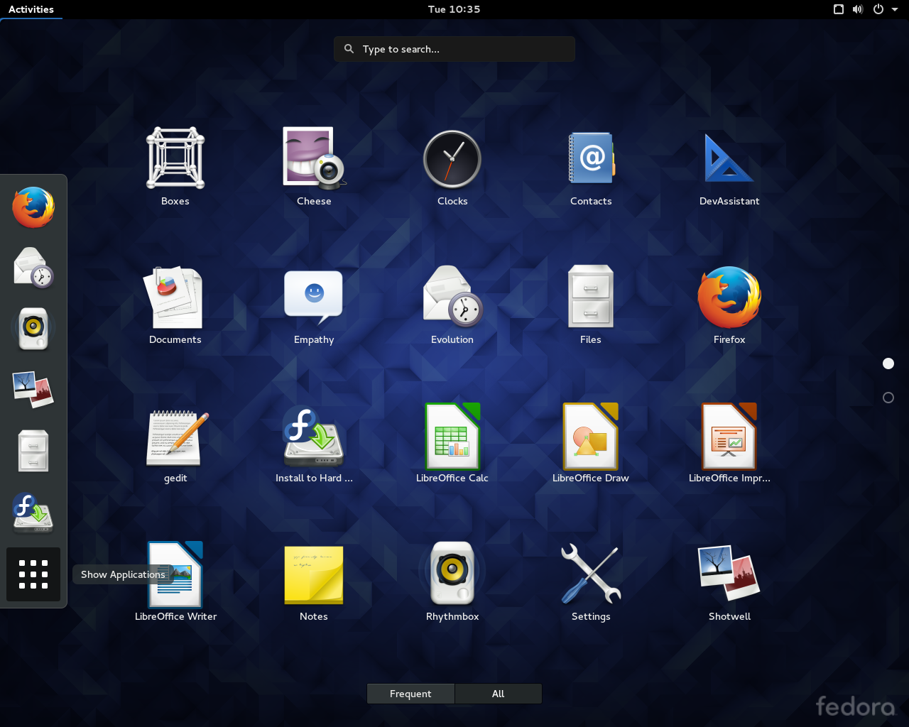 Fedora (que um dia já foi conhecido como "Fedora Core") é uma distribuição Linux desenvolvida pelo Projeto Fedoram como seu próprio nome sugere, suportada pela comunidade e de propriedade da Red Hat. O sistema Fedora contém software distribuído sob uma licença livre e de código aberto, e tem como objetivo estar na vanguarda dessas tecnologias. Além disso, Fedora tem uma reputação de apostar na inovação, na integração de novas tecnologias e trabalhar em estreita colaboração com as comunidades Linux. A área de trabalho padrão no Fedora é o ambiente desktop GNOME e a interface padrão é o GNOME Shell. Outros ambientes de desktop, incluindo o KDE, Xfce, LXDE, MATE e Cinnamon estão disponíveis. Projeto Fedora também distribui variações personalizadas de Fedora chamado Fedora Spins. Estes são desenvolvidos a partir de conjuntos específicos de pacotes de software, oferecendo ambientes de trabalho alternativos ou de interesses específicos, incluindo jogos, segurança, design, computação científica e robótica.