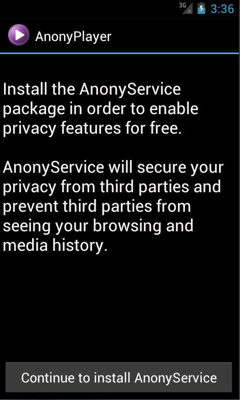 Tudo isso, obviamente, não foi suficiente para os criminosos por trás deste pedaço de malware, como também torná-lo pedir que o usuário instale um aplicativo chamado AnonyService, que supostamente protege a privacidade do usuário de terceiros. Mas tudo isso, obviamente, não foi suficiente para os criminosos por trás desta amostra de malware, pois esses também pediram que o usuário instalasse um aplicativo chamado "AnonyService", que supostamente protegeria a privacidade do usuário em relação a terceiros. Entretanto, os usuários que optam por fazê-lo realmente instalarão um módulo de publicidade, que irá perguntar ao usuário sobre permissões relacionada ao uso do Serviço de Acessibilidade.