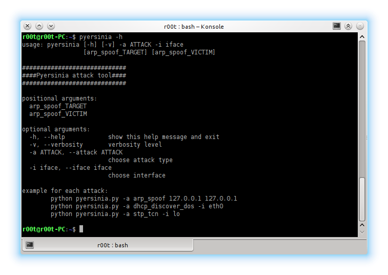 Pyersinia é uma ferramenta semelhante à Yersinia, porém com implementação em Python usando scapy. O principal objetivo desse utilitário é a realização de ataques de rede, tais como spoofing ARP, DHCP DoS, STP DoS, dentre outros. A comunidade desenvolvedora de Pyersinia pode adicionar novos ataques à sua ferramenta, de uma forma bastante simples, utilizando plugins. Isso ocorre porque Pyersinia usa o framework STB (Security Tools Builder). E o que há de novo nesse utilitário? Agora, foi feita a implementação de capacidade para novos ataques, tornando essa operação uma tarefa muito simples, porque os desenvolvedores utilizaram o framework STB (Security Tool Builder). Portanto, os novos ataques são adicionados por plugins.