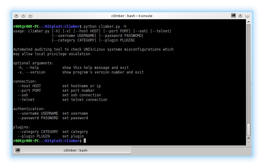 Climber é uma ferramenta de auditoria que atua de forma automatizada, e que foi desenvolvida para verificar os possíveis erros de configuração em sistemas UNIX/Linux que podem permitir escalonamento de privilégios local. No que tange às dependências, é preciso um ambiente Python 2.7 ou versão superior; python-crypto; python-mako e python-paramiko. Importante ressaltar que o utilitário Climber precisa de Exscript, um módulo em Python e um processador de modelo para automatizar conexões de rede através de protocolos como o Telnet ou SSH.