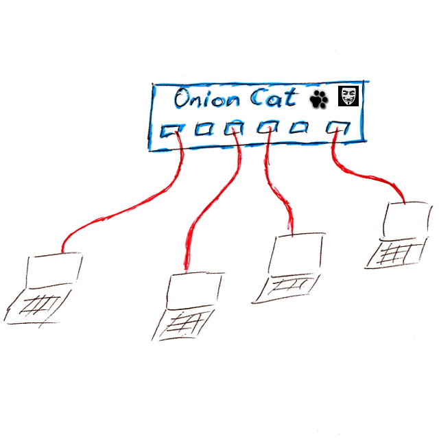 OnionCat é um adaptador de VPN que permite conectar dois ou mais computadores ou redes, através de VPN-tunnels. Ele foi projetado para utilizar as redes de anonimato Tor ou I2P como o seu transporte, portanto, proporciona anonimato baseado em localização, ao mesmo tempo que permite a criação de pontos de extremidade do túnel com endereços IP únicos privados. Além disso, OnionCat usa IPv6 como protocolo de rede de layer nativa 3. Os clientes conectados através dela aparecem como em uma única rede IPv6 lógica, como se estivessem ligados por um switch virtual. Dessa forma, OnionCat calcula automaticamente e atribui endereços IPv6 únicos para túneis e endpoints, que são derivados do ID de serviço oculto (Onion ID) do serviço oculto do cliente Tor local, ou mesmo a partir do servidor de destino I2P local, respectivamente.