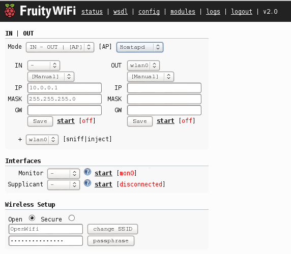 FruityWifi é uma ferramenta que foi desenvolvida para a realização de auditoria de redes Wireless. A aplicação pode ser instalada em qualquer sistema baseado em Debian, com a possibilidade de adicionar os pacotes extra. O utilitário em questão foi testado em sistemas Debian, Kali Linux, Kali Linux ARM (Raspberry Pi), Raspbian (Raspberry Pi), Pwnpi (Raspberry Pi) e Bugtraq. Em sua mais recente versão, que é a 4.0, Utils foram adicionados (em substituição ao "ifconfig"), além de um sério problema de compatibilidade no Kali Linux que foi corrigido pela equipe responsável pela ferramenta. Na versão anterior, a 2.3, o monitor mode (mon0) passou por algumas correções (relacionado ao novo airmon-ng), devido a problemas de compatibilidade.