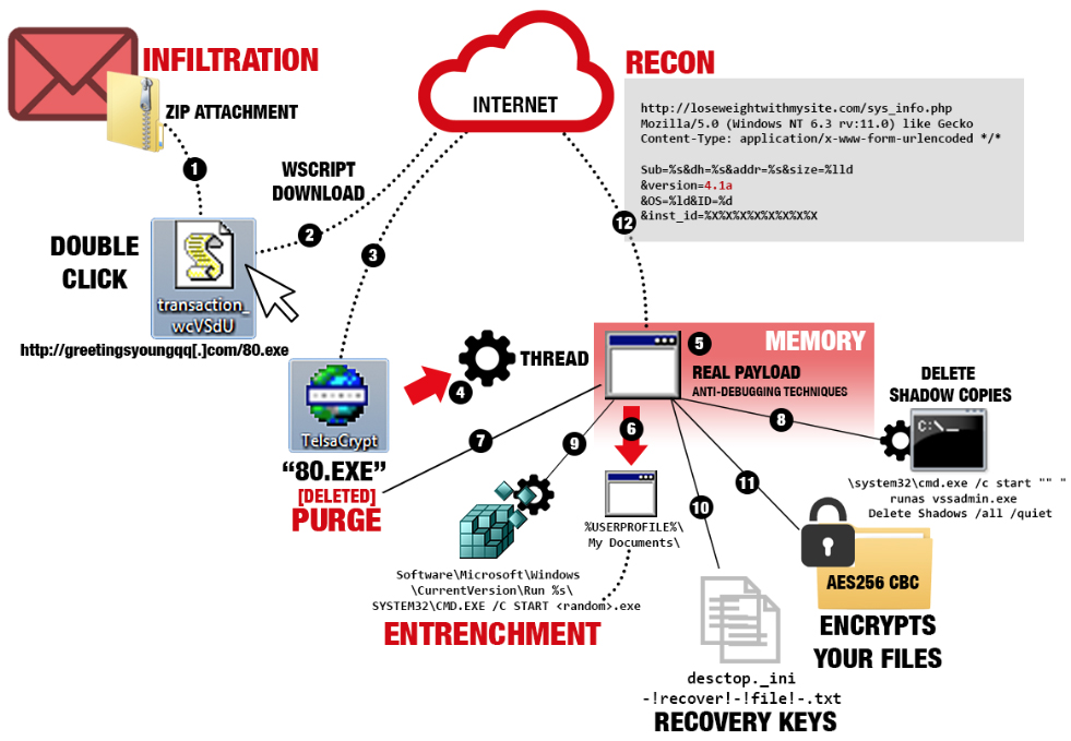 O ransomware TeslaCrypt foi detectado pela primeira vez e analisado no início de 2015, e assim, os pesquisadores imediatamente criaram uma ferramenta de decodificação para ele. O malware, desde então, alcançou as versões 4.0 e 4.1, mas infelizmente, não há atualmente nenhuma maneira para decriptografar os arquivos criptografados pela praga, exceto mediante o pagamento do resgate e o recebimento da chave. Uma das alterações mais recentes para o malware, é que ele não usa uma extensão para arquivos criptografados, tornando mais difícil ainda para as vítimas identificar a ameaça vigente (ID Ransomware deve ajudar com isso). Outra grande mudança que foi implementada, remete ao fato de que TeslaCrypt não é mais entregue somente via kits exploit, mas também é entregue através de e-mails de spam.