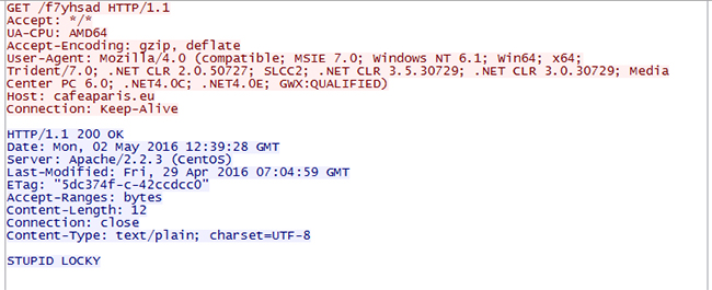 Alguém está manipulando os botmasters do Dridex. O botnet em questão, ou pelo menos uma ou mais das suas subnets, estão enviando e-mail de spam para entregar o já conhecido e perigoso ransomware Locky; ele foi comprometido novamente, e tem estado trabalhando incessantemente na distribuição de um arquivo fictício ao invés da entrega do malware. Isso poderia envolver atividades de White Hackers ou cyberriminosos rivais, mas a mensagem é clara - a carga, que trata-se de um binário de 12kb, carrega duas palavras simples: "Stupid Locky". O arquivo fictício não faz absolutamente nada, porque ele não pode. Esse comprometimento do servidor que hospeda o conteúdo malicioso, foi descoberto por pesquisadores da Avira, depois de terem recebido um e-mail típico transportando um anexo JavaScript cujo propósito é fazer o download do malware. De acordo com Sven Carlsen, não há como acreditar que os cybercriminosos tivessem iniciado esta operação, por causa do dano potencial para a sua reputação. Entretanto, após os exemplos de Dridex e agora o ransomware Locky, mostra que mesmo os cybercriminosos, mestres da camuflagem, também são vulneráveis.