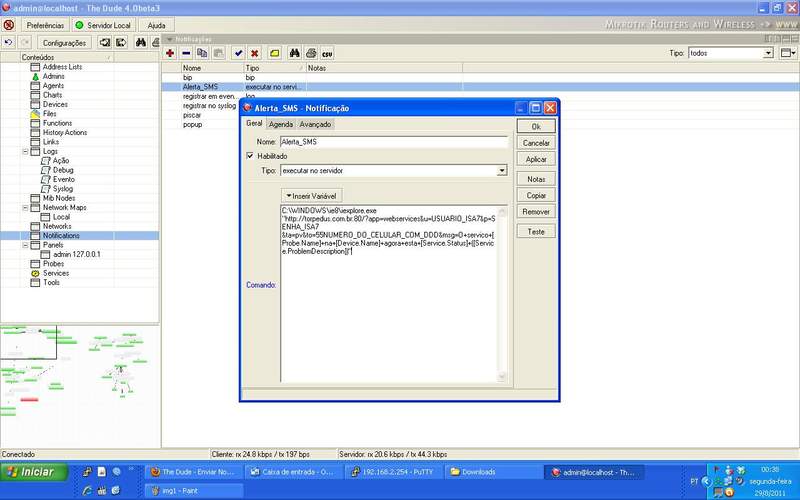 Olá Galera, passei os ultimos 10 dias sofrendo e apanhando do THE DUDE para fazer o bichinho me avisar via SMS quando um radio meu parasse de pingar...