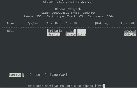 Obs: O nome do dispositivo /dev/sdb pode variar. Neste exemplo esta sendo adicionado um 2º HD. Se estiver adicionando um 3º, teremos um /dev/sdc, se tivermos um 4º, /dev/sdd, um 5º /dev/sde e assim por diante.