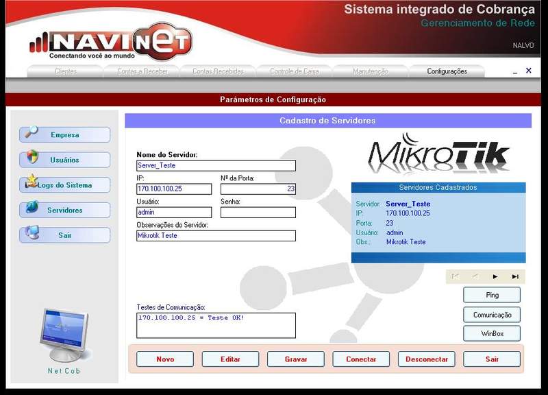 NetCob - Sistema de gerenciamento de provedores com recursos de rede - Interação Mikrotik