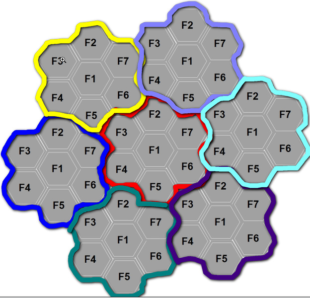 Conforme você pode observar na próxima ilustração temos 7 cluster, essa técnica é ilimitada uma vez projetado um cluster com a ou as frequências desejada é só sair espelhando (replicando) seu cluster até atingir toda área que deseja cobrir com o sinal, essa teoria pode ser aplicando tanto para redes externas (outdoor) como em redes internas (indoor).