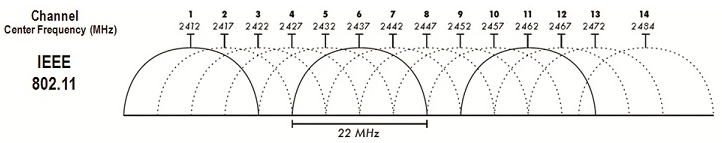 Nas redes wireless padrão 802.11b/g que usa frequências não licenciada denominado ISM (Industrial Science Medical) os canais são muito próximos não oferencendo um espaçamento entre os canais (guard band) e com isso a necessidade de se respeitar a legislação que entre outros estabelece á potência adotada no País