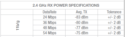 no Brasil esse canais vai de 1 à 14, alguns equipamentos importados não só vai até o canal 11, e tem um controle de potência manual que você pode ajustar livremente ou em alguns modelos de equipamentos tem um box com opção de escolha do País, quando selecionamos o País automaticamente já ajusta os canais e potência para o respectivo País no Brasil essa potência é de aproximadamente 300mW(+25dBm) para transmissão e para recepção até aproximadamente -90dBm, isso vai depender do fabricante do equipamento, nos Estados Unidos por exemplo os canais começa no 1 e vai até o 11 e a potência é maior que a permitida no Brasil, essa potência é de +29dBm o equivalente a 800mW dai a necessidade de se respeitar a legislação local para evitar interfências na vizinhança, para a recepção quanto menos sinal na recepção menor é a taxa de transferência de dados, normalmente se consegue um melhor throughput até -70dBm menos que isso a taxa caie draticamente, abaixo temos uma tabela com a relação sinal recebido para taxa de transferẽncia, essa tabela foi retirado do manual do Ubiquit Bullet M2