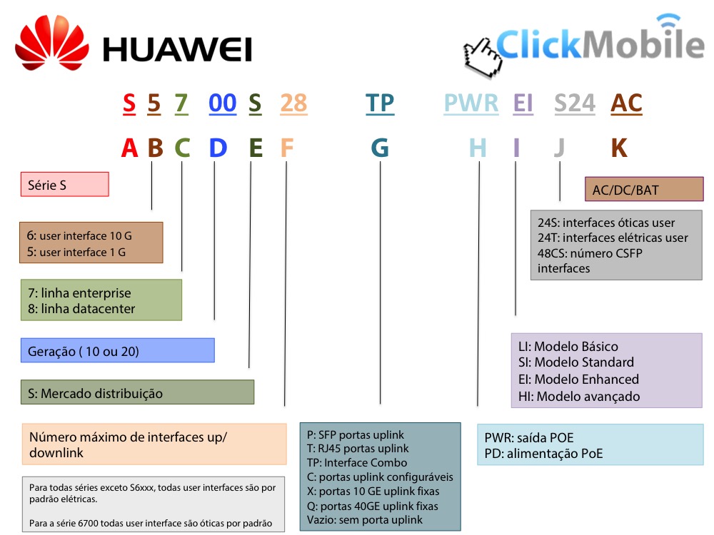Pessoal estou postando como saber desvendar as letras dos nomes dos switches HUawei: