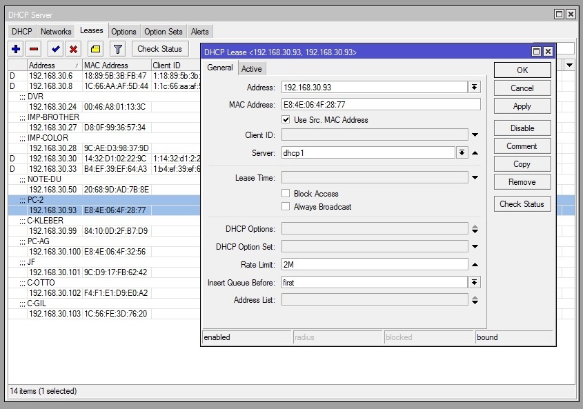 Controle Banda por MAC+ IP-BINDINGS ativado