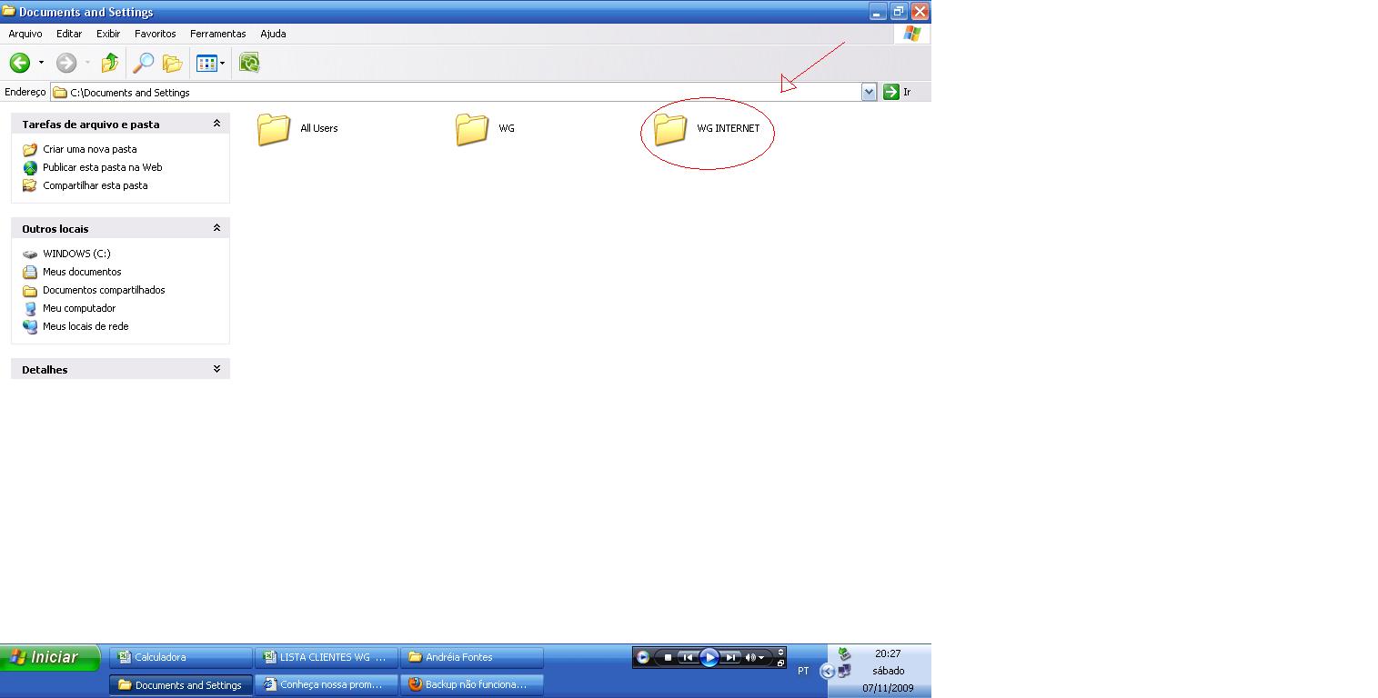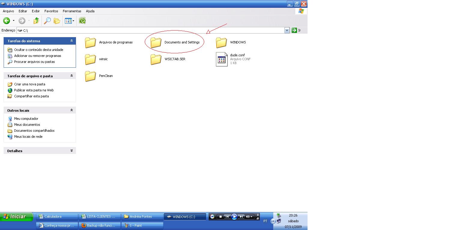 abra a pasta (Documents and Settings)
