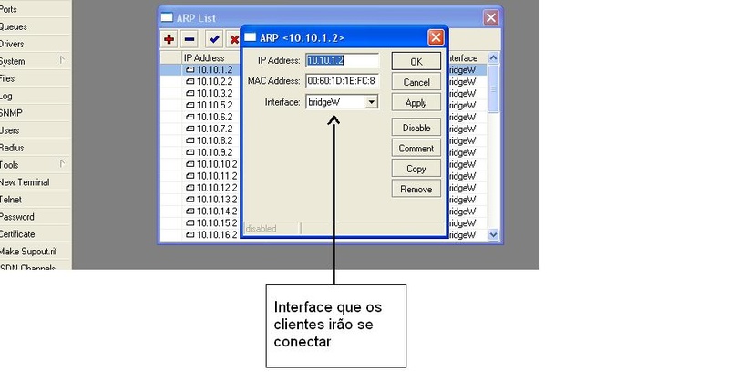 Em IP >> ARP será amarrado o IP ao MAC do cliente, tirei um print também