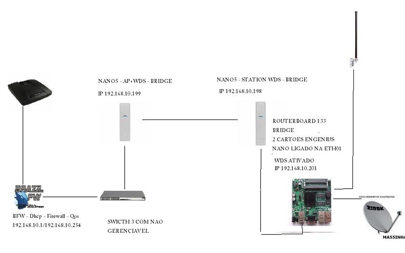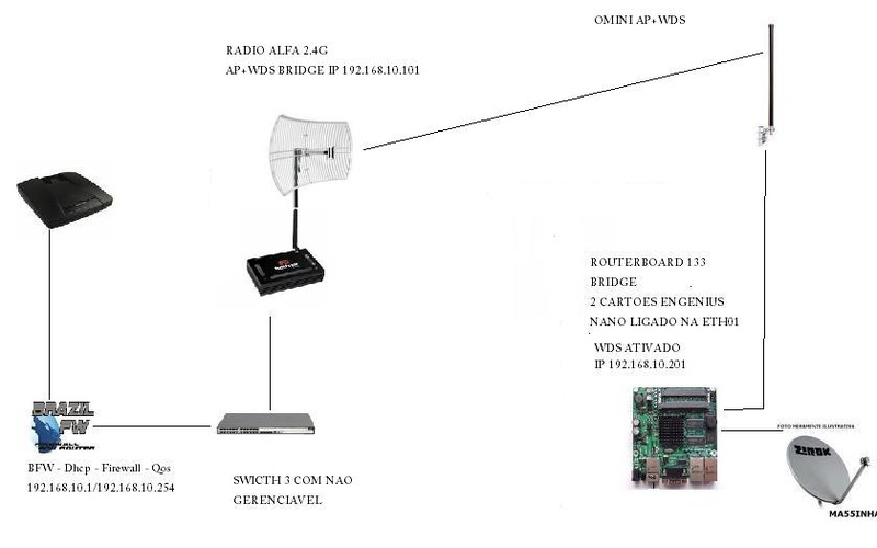 Atualmente Tenho "funcionando" Servidor BFW + 1 radio alfa + antena direcional e um microtick + omini fazendo esse enlace. Funcionou bem durante um tempo mas com o trafego da rede aumentando começei a ter perda de pacotes e pings muito altos nos horarios de pico, entao resolvi colocar os 2 nanos pra funcionar.