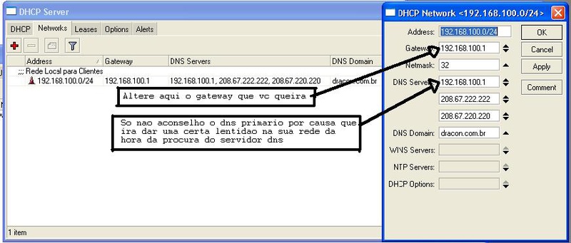 EX:range 192.168.0.1 gataway ip clientes 192.168.0.2-192.168.0.254