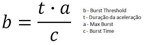 O burst tem dois estados em sua duração: um é o da aceleração e outro a limitação. É comun alguém configurar o burst e notar que a velocidade normaliza antes de passado o burst time [1] isso ocorre porque o Threshold já foi alcançado. A fórmula a seguir permite calcular com alguma precisão os dois estados do burst.