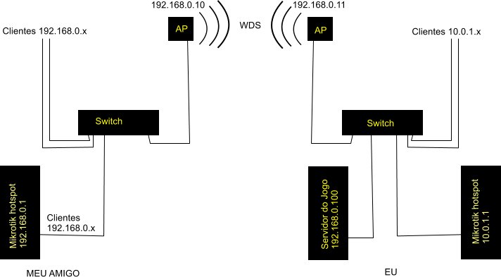 Meu problema é o seguinte, meu amigo tem um provedor e eu tenho um também, os dois são hotspots, em faixas diferentes, eu costumo jogar com meus clientes e meu amigo queria colocar o provedor dele nesses jogos também.