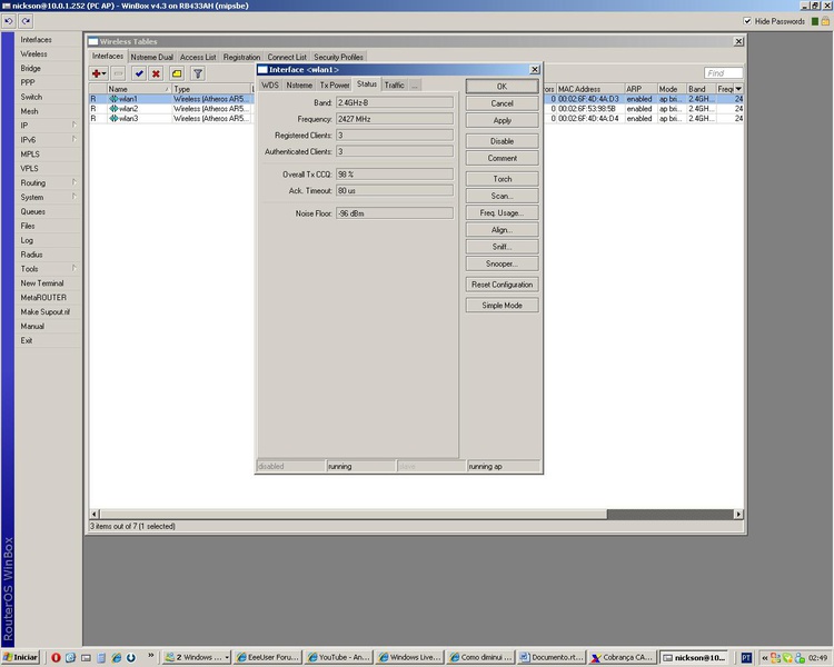 gente tou prescissando de uma forçinha aqui ^^...:( tava usando a versão do mk 2.9.27, dei um up grade para a versão 4.5, ai então reparei q nau tem aquela opção tx power pra controle de potencia dos cartões... alguem saberia onde fica o danado do butão rsrsr... agradeço a todos desculpe-me... sou marinheiro de primeira viagem..:banghead: