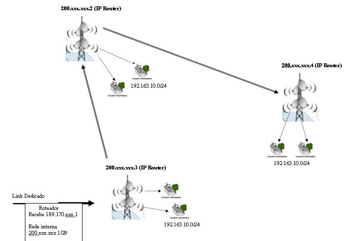 Temos uma rede aonde os Mks das torres todos tem ip válido 200.xxx.xxx.xxx externo para acesso e cada MK com hotspot e roteando para rede 192.163.10.xxx/24 clientes.