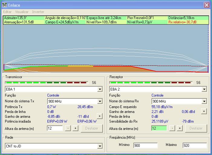 Faço das minhas as palavras do Leandro. Antena para 900MHz SOMENTE Hyperlink. Tenho 7 enlaces 900 em lugares diferentes, e no começo tentei usar antenas de outros fabricantes, e nunca ficava prestando. Depois das Hyper, só alegria! Nesse seu enlace, vc consegue fácil 10 mbits FULL. Para configurar os cartões no MK, vc tem de seguir a risca os padrões do fabricante. Para seu enlace, se vc não tiver muita interferencia de Celular por ai, use os canais 5 ou 6, que são os únicos que suportam canalização de 20 MHz, e configure para 2.4 G only. Siga a risca o esquema de canais que vem no adesivo que acompanha o cartão que não tem erro. Só para vc ter uma ideia, esse enlace ai que posto na imagem, passa 21 Mbits em HALF TCP e 9 Mbits em FULL TCP. Em tempo o nivel de sinal ficou travado em -69 nesse enlace.