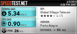 Foi usado o site www.speedtest.net para o teste de velocidade usando uma rota de teste de menos de 50 kilomentros ponto a ponto.