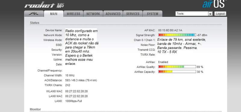 Agora vou substituir um enlace de 79km q tenho com Rocket e Dish 30 em banda de 10mhz. Passando 10 TX por 5 RX.